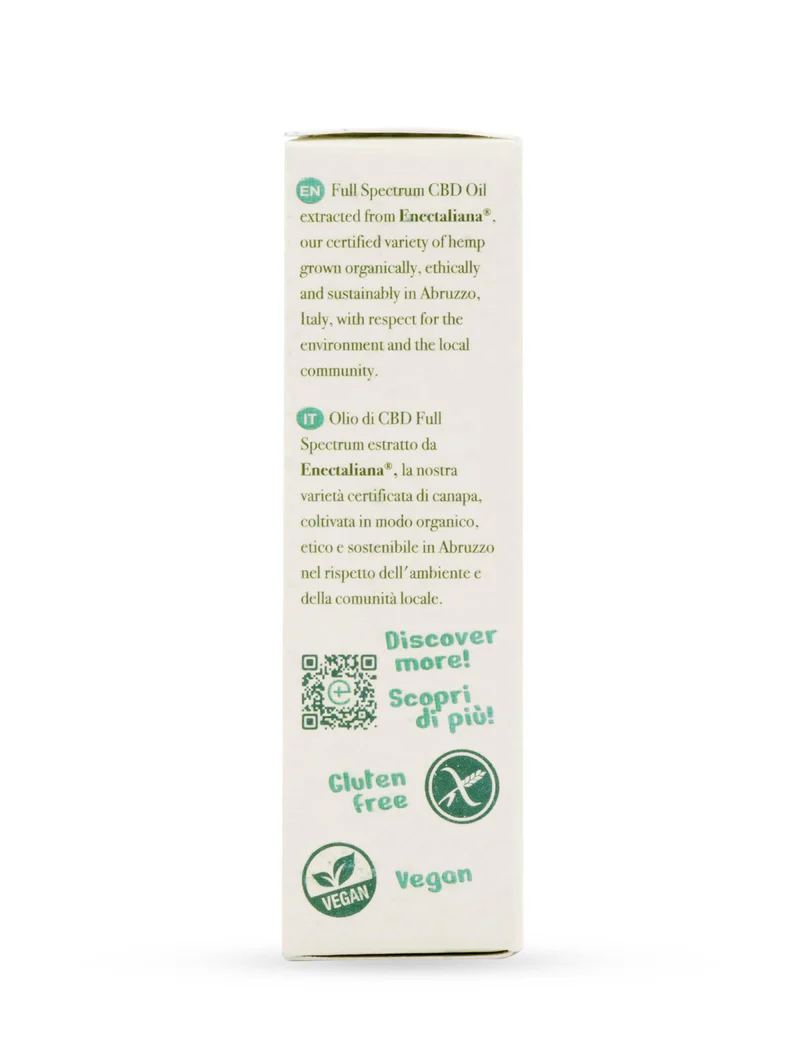 Il contenuto di THC è inferiore allo 0,2%, come previsto dai limiti di legge. Oltre ai cannabinoidi, questo olio a spettro completo contiene un’accurata selezione di terpeni.