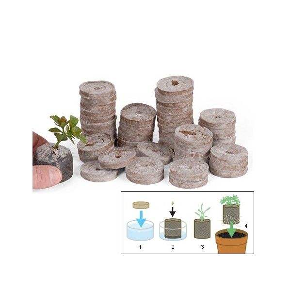 Dischetti per germinazione venduti sotto forma di torba purissima norvegese, liofilizzata e pressata, che permettono di evitare lo shock da trapianto. Diametro: 5cm