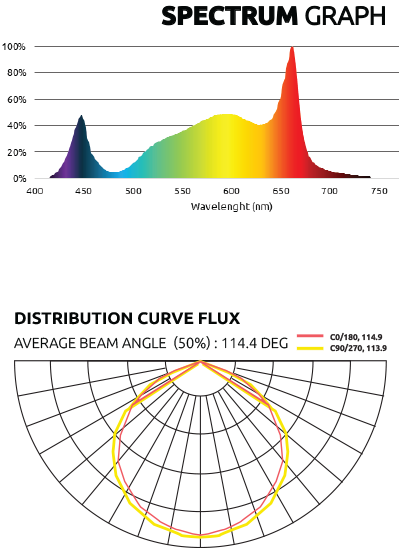 Questo apparecchio è dotato di un'ampia cornice rettangolare con un ingegnoso sistema che crea una diffusione uniforme della luce a breve distanza dalla coltura, consentendo l'illuminazione con un'unica fonte per sistemi di coltivazione multistrato, banchi singoli in stanze con soffitti bassi e tende da coltivazione.