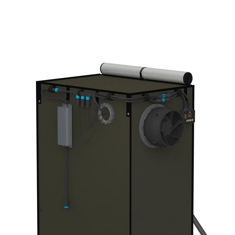 Con l'involucro impermeabile al 100% alla luce, motori EC a bassa rumorosità, e filtro al carbone ad alta efficienza (venduto come opzione), questo kit di coltivazione diventerà il tuo compagno più discreto.