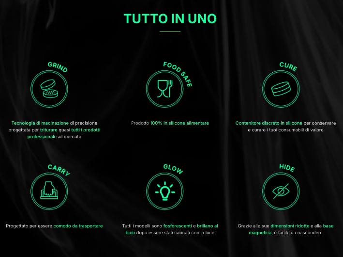 Hashy macina, conserva, cura, si illumina al buio e resta discreto.